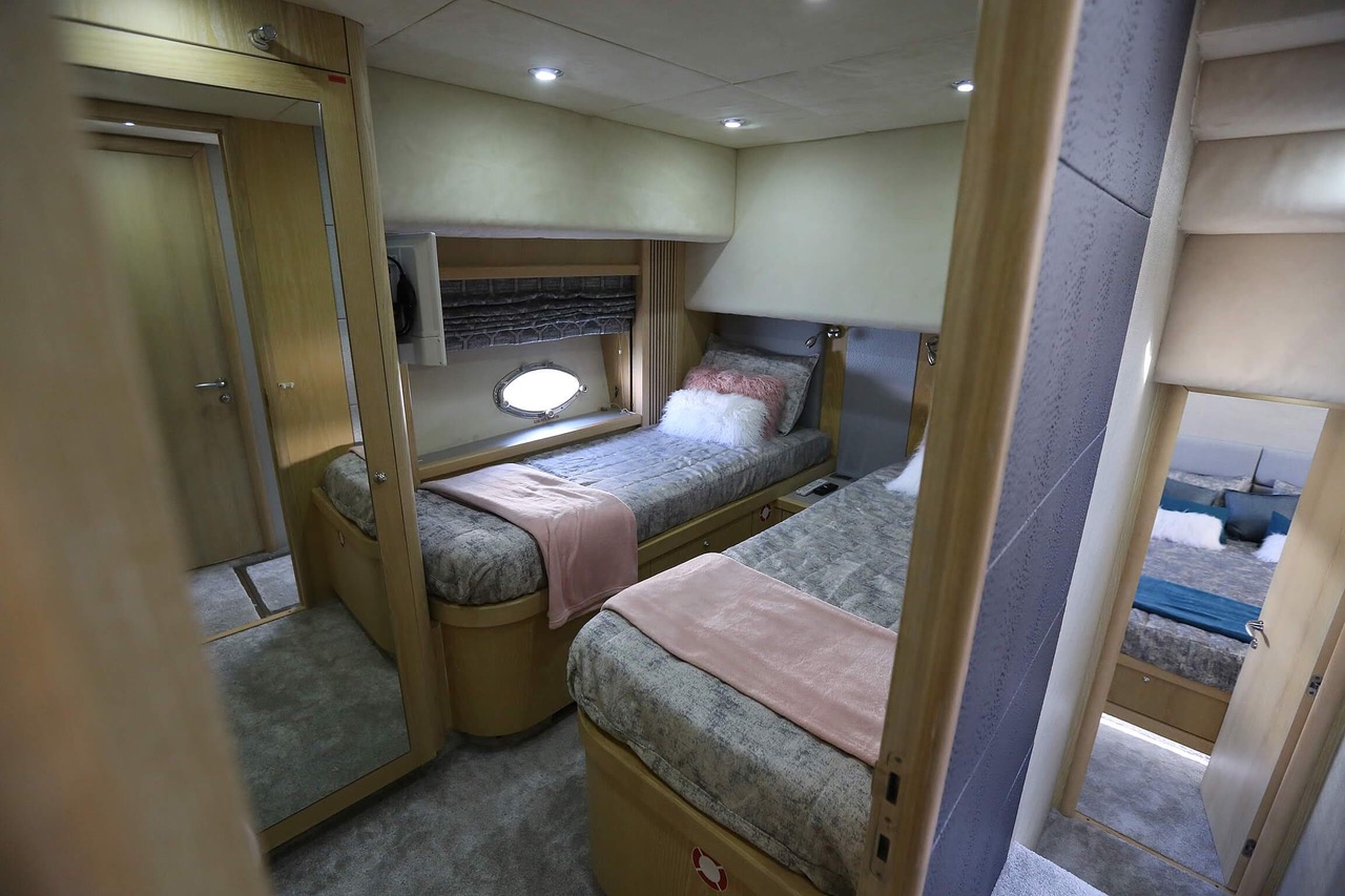 Sunseeker predator 82 completely redone, from the engine room to the living room. Engines and generator completely overhauled, electricity and plumbing improved and lighter, lounge plan and sailor’s cabin revisited to save space, new cockpit teak. The 4 cabins are new. This 82-foot open is beautifully refitted. A must see.